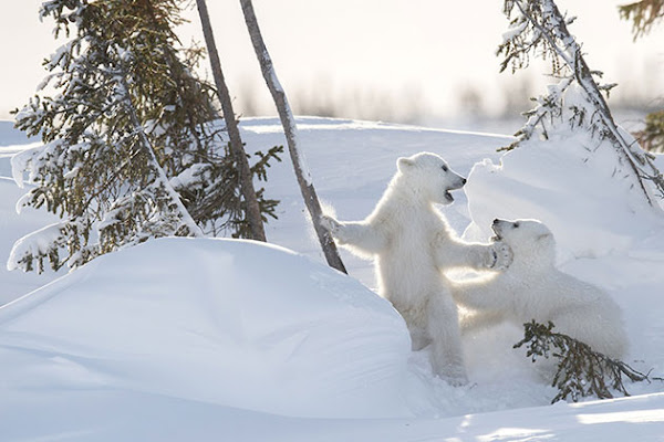 Each year, from mid-February to mid-March, a grand occasion occurs in the Wapusk National Forest in Canada: polar bears appear from their caves with their four-month-old babies for the very first time.