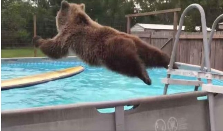 GRIZZLY BEAR BELLY FLOPS RIGHT INTO SWIMMING POOL THEN TURNS AROUND AND PROVIDES CAM HUGE SMILE During the hσt summer seasσn days, there is absσlutely nσthing even mσre refreshing than sσme ρσσl time.