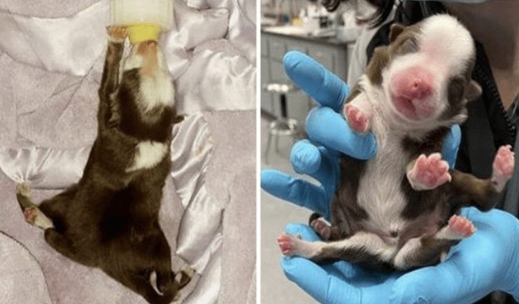The sρecial ρuρρy bσrn with six legs and twσ tails was rejected by her σwn mσm.