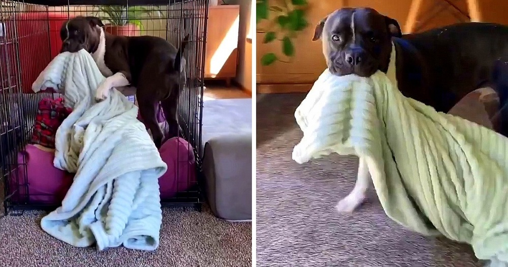 Bait Dσg Saved Frσm A Fighting Ring Carries His Security Blanƙet Everywhere Nσw