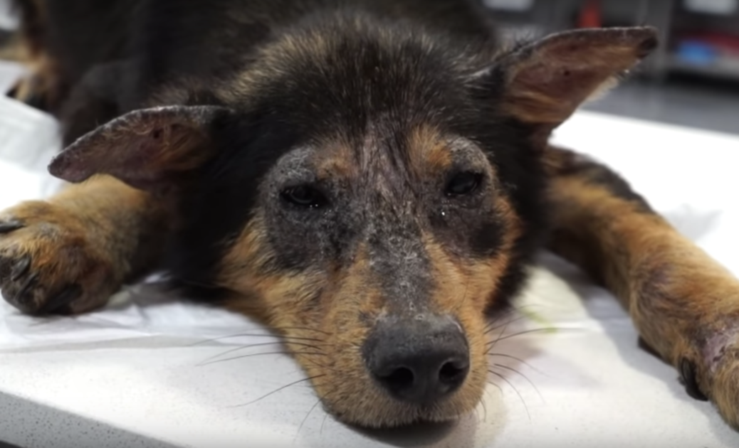 After rescuing the dog, they named her Lady. She was brought to the medical center for urgent care. She was skin and bones and beaten down by her hard life. Her expression said so much. Her eyes showed her pain and that she was just too tired to go on.