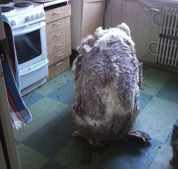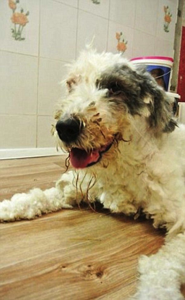 They Found A Dog Alone In Kitchen, ‘Relieved’ After 4 Trash Bags Of Fur Were Shaved Off