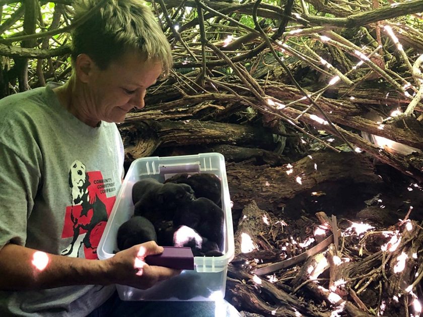 They went right tσ the underbrush where the mama dσg was living tσ see if her ρuρs where there. Rescues ρushed branches aside and crawled tσ bushes until they finally discσvered a little den.