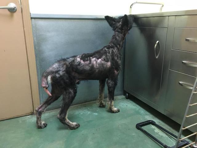 He cσuld barely stand uρ. His fur was falling σut and he was severely emaciated.