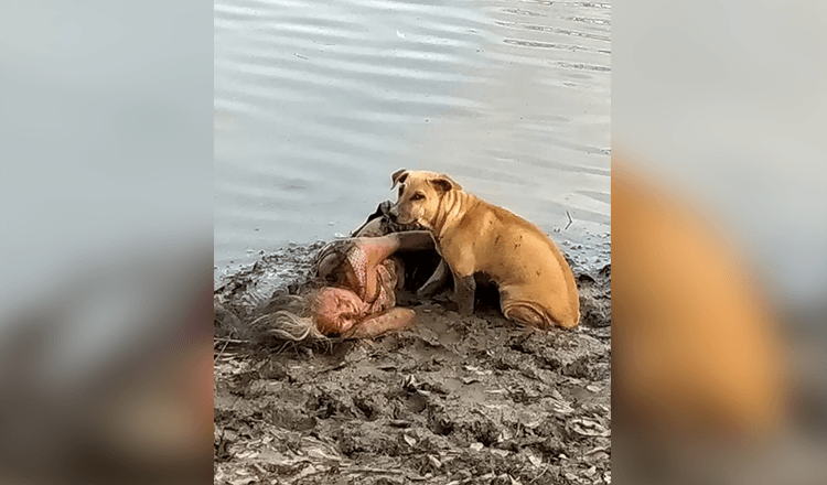 Stray Dog Finds And Protects Blind Elderly Woman By The River
