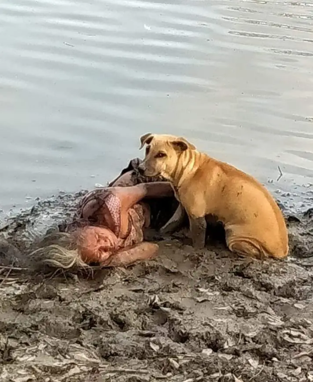 Stray Dog Finds And Protects Blind Elderly Woman By The River
