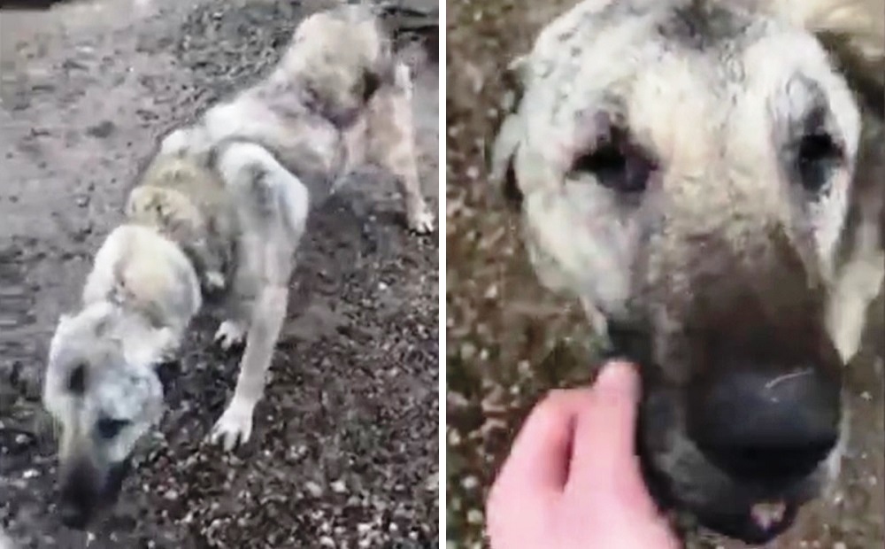 Volunteers from “Rescuers Without Borders” spotted Kratos collapsed in a muddy hole in the hazardous landfill on a freezing day. They were heartbroken to see the defeated on the dog’s face, who clearly thought he had a loving family before he ended up in the godforsaken landfill.
