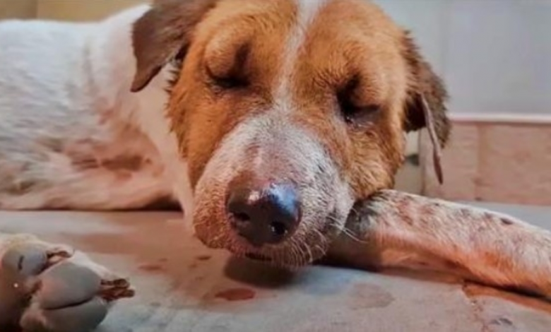 Thankfully, a kind human saw the dog and called a rescue organization immediately. The woman waited with the dog until help arrived. The poor pup was so depleted that she couldn’t even wake up. Her face was swollen, likely from a bite from another animal. It is unclear if it was from another stray dog or cat that fought her for food or if it was from an encounter with a hungry wild animal.