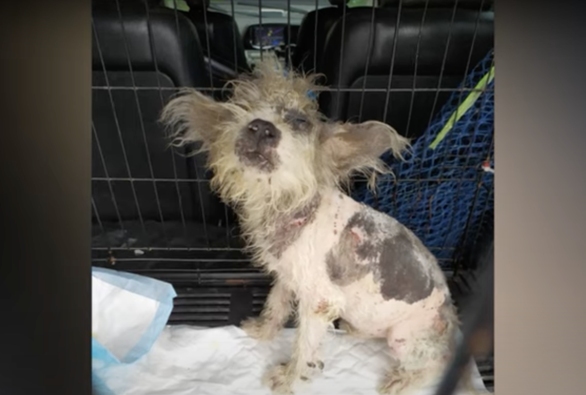 One little dog had been living a painful existence. He had mange and secondary skin infections that went untreated for a long time. Because he had hair instead of fur, this only made his situation worse causing massive matting in the places he didn’t lose his hair. His poor body was so uncomfortable.