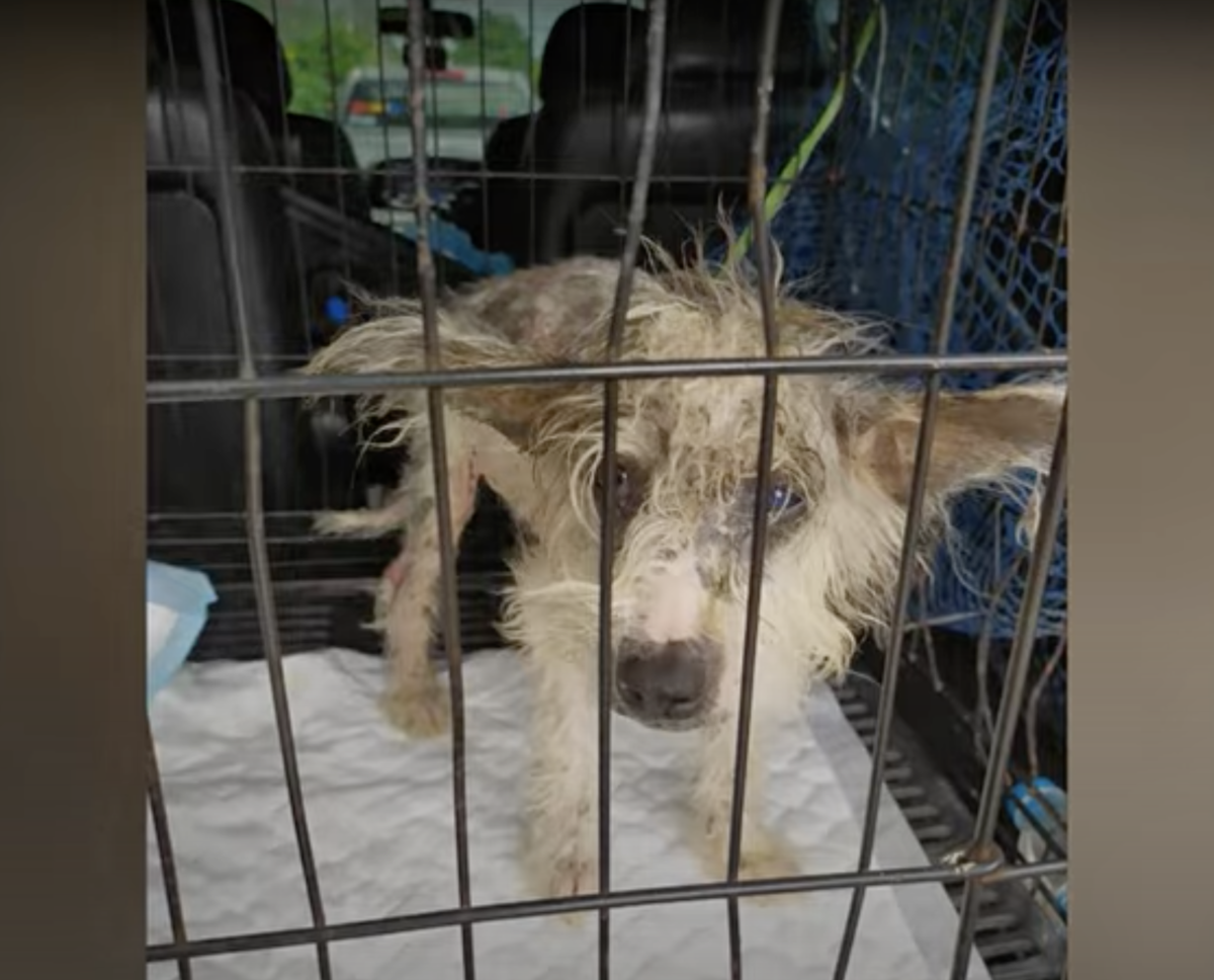 The selfish family finally handed the dog over. The poor boy looked defeated. His skin infections were so bad that his whole body was weak. The kind neighbors didn’t have much money so they borrowed a rusty crate from a friend. They raced the dog over to a nearby vet clinic. The dog was scared but he finally settled down once he realized these people were there to help him!