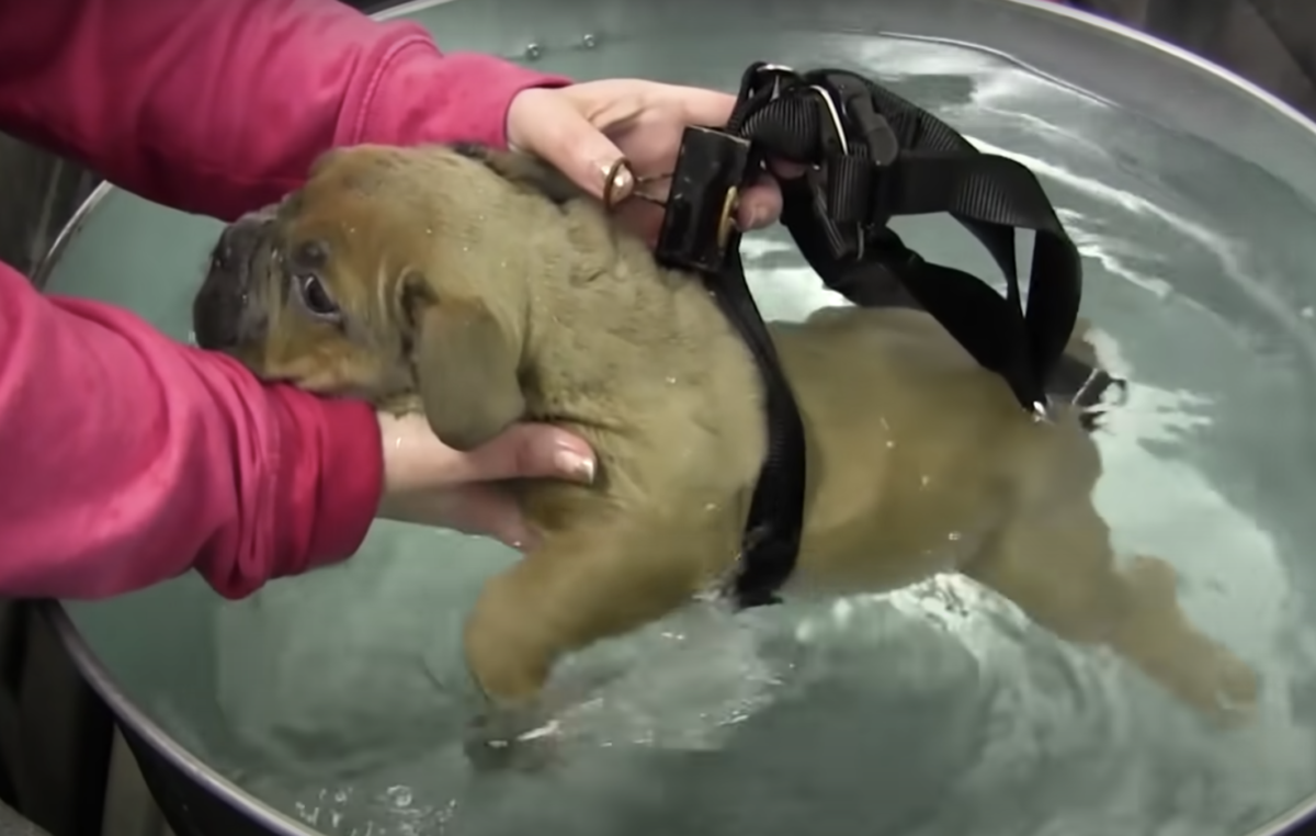 Bueller needed physical therapy in order to strengthen his muscles. Hydrotherapy is a terrific option! And the puppy loved every minute. He pumped his little legs as best as he could. To see Bueller happily splashing around made everyone smile.