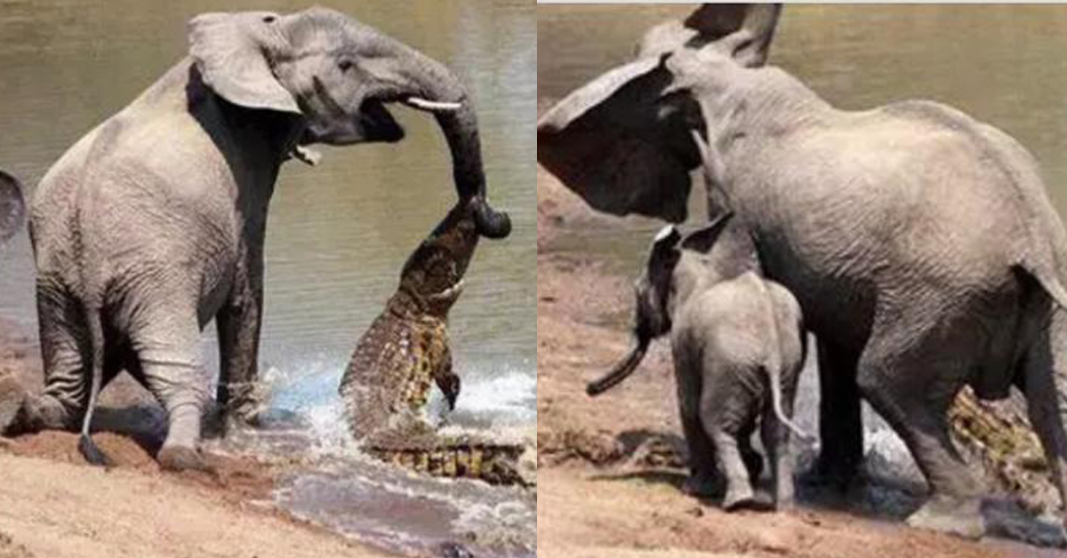 Mother Elephant Saves Her Baby From Fatal Crocodile Attack By Brilliant Trick