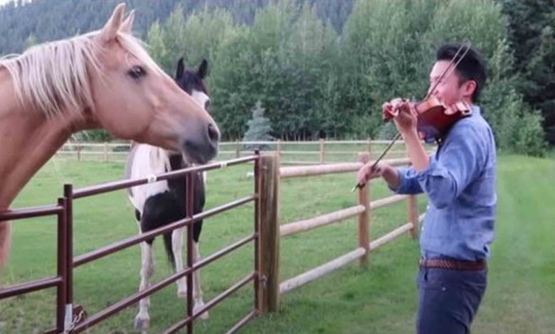 Man Playing Violin Is Joined By 2 Horses Who “Dance” To His Musical Serenade