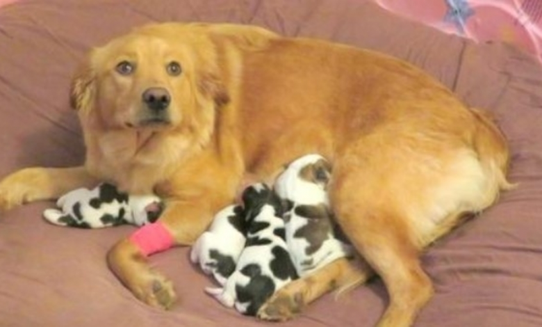 Workers Find Dumped Golden Retriever, As She Gives Birth To “Cow Babies”