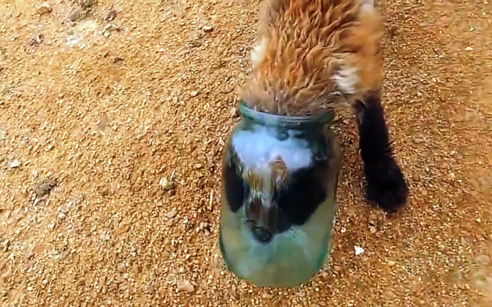 A baby fox became a victim of human littering while foraging for food. The poor creature inadvertently got his head stuck in a jar, and the jar’s rim began squeezing his neck as he tried to escape, writes ilovemydogsomuch