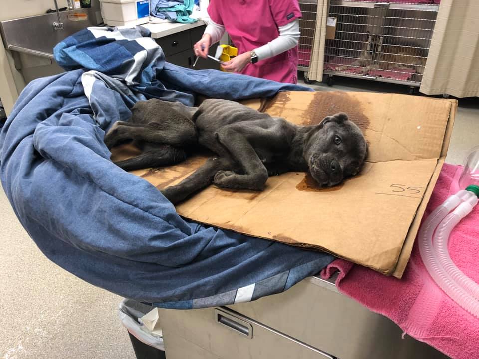 This bundle was a rolled up blanket that actually contained a puppy– and that puppy was close to death. Later named Harris, the weak puppy was just skin and bones. He was rushed to the medical center at the Stray Rescue of Saint Louis (SR).
