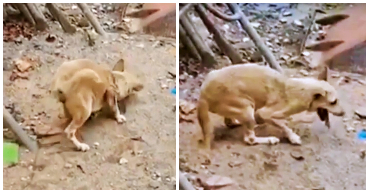The rescuers in this story saw a dog, they later named Kaew, struggling to move. She was found living near a bridge in Thailand. Her injuries were caused by a car that had hit her a long time ago. Her bones healed in such a horrific way that she had to use her mouth and hind legs to move about.