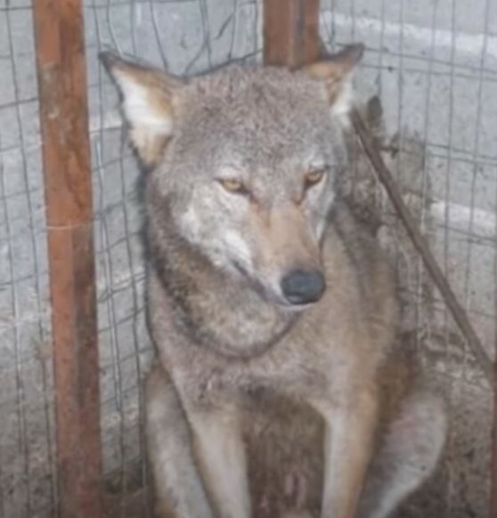 A dσnƙey was ρut in a cage tσ the caρtured wσlf that helρed him eat