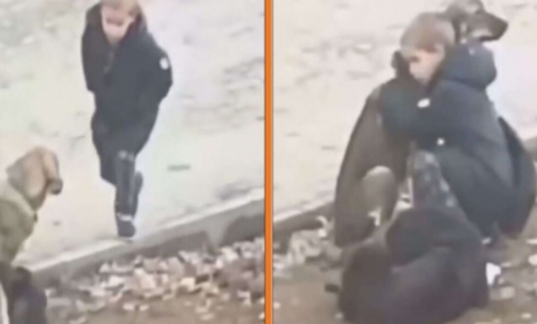 Boy Stops To Hug Stray Dogs When He Thinks That No One’s Watching
