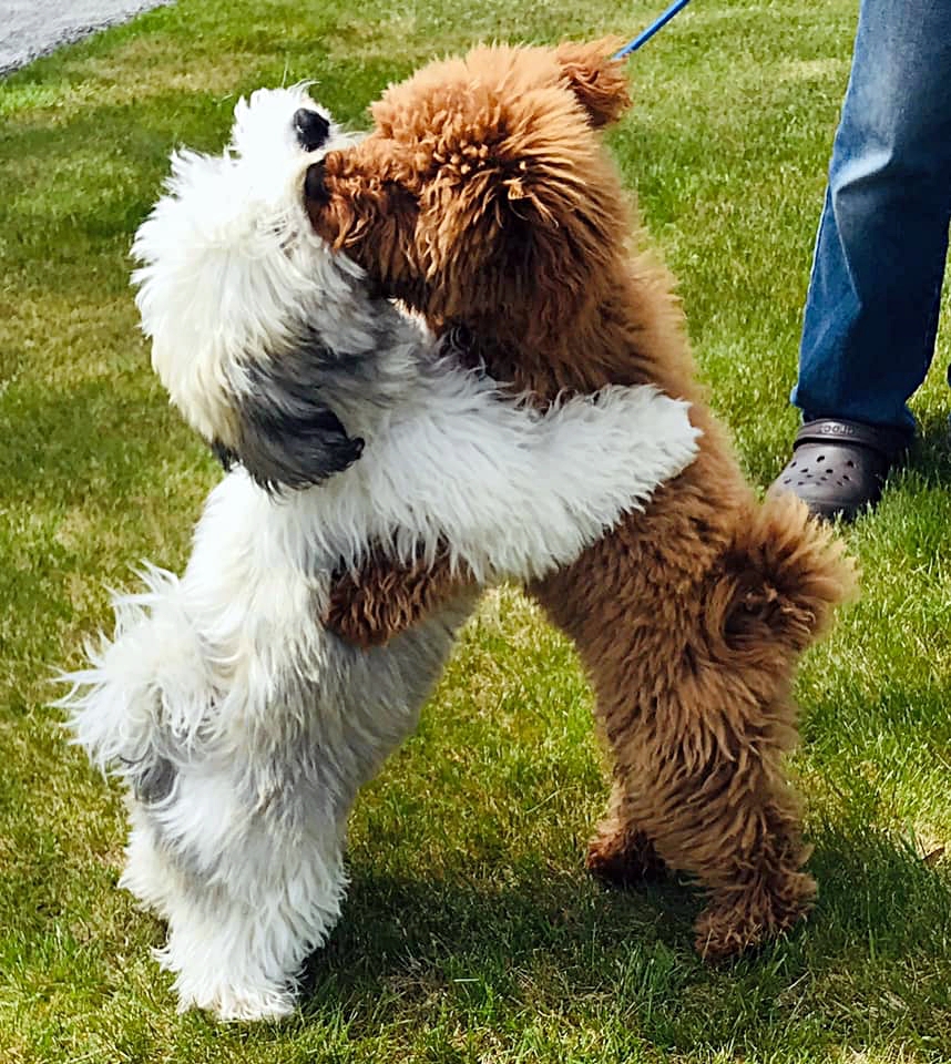 The adorable duo has been best friends since they were young puppies, when their families got them around the same time. They are always so happy to see each other and greet each other in the sweetest way.
