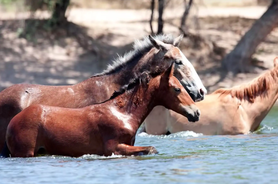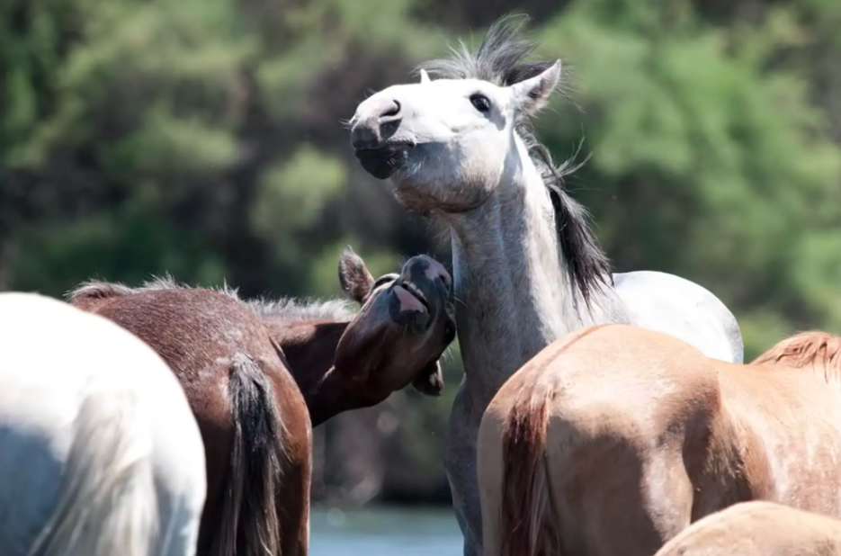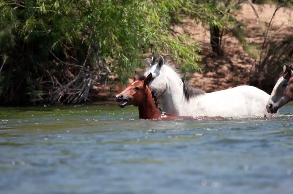 In was such a quiet sunny afternoon, when the peaceful atmosphere was suddenly interrupted by some noisy neighs coming from the other side of the river. Even though, the two groups of horses initially ignored each other, the fea.rless Champ eventually decided to cross the river and investigate.