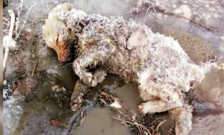 A woman was on her way to work on a very cold day when she spotted a dog lying on the ground. Her body appeared stiff and when the woman leaned down to touch her, she was ice cold. Assuming the woman was too late, she cried for the poor dog that had to die alone. But as the woman wept, the dog suddenly moved, writes ilovemydogsomuch