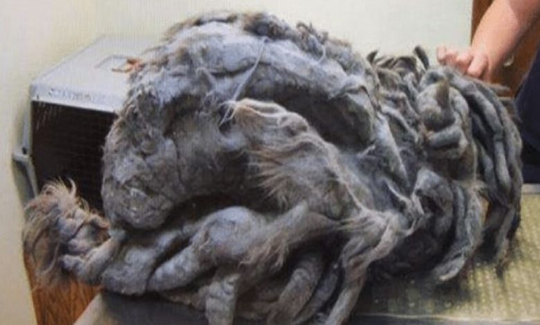 The cat was a prisoner of its own fur, barely able to move under the tangled, matted layers.