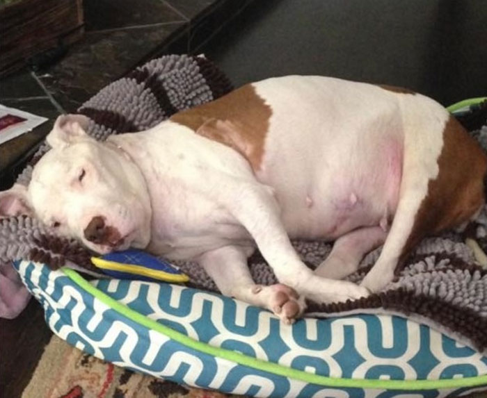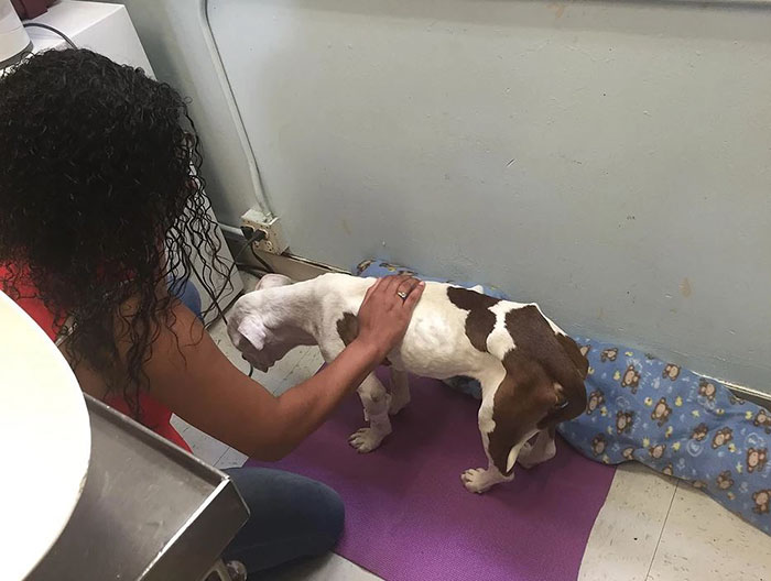 After many days of treatment, the doggie gained some weight and her blood tests got better