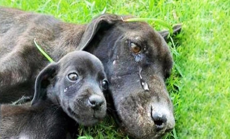 Exhausted Mother Dog Found Crying As She Couldn’t Look After Her Puppies