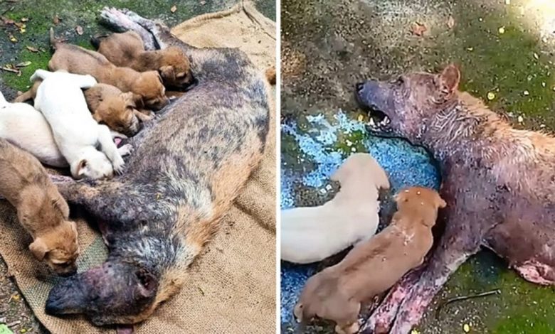 Poor Mother Dog Unable To Stand Lying There Desperate Crying For Help Her Puppies!