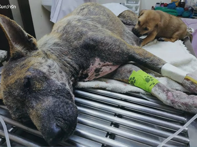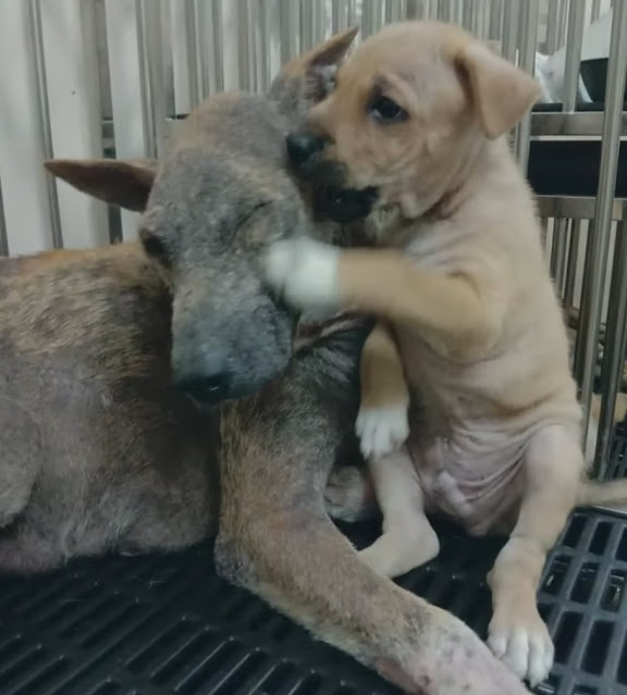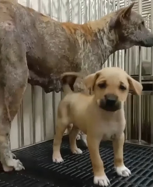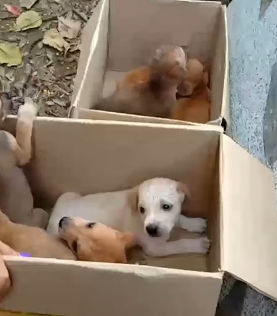 They were taken to a shelter for animals. They are a stray dog family, and the mama was badly injured due to skin disease. Her puppies are all healthy and do not have any serious health issues.
