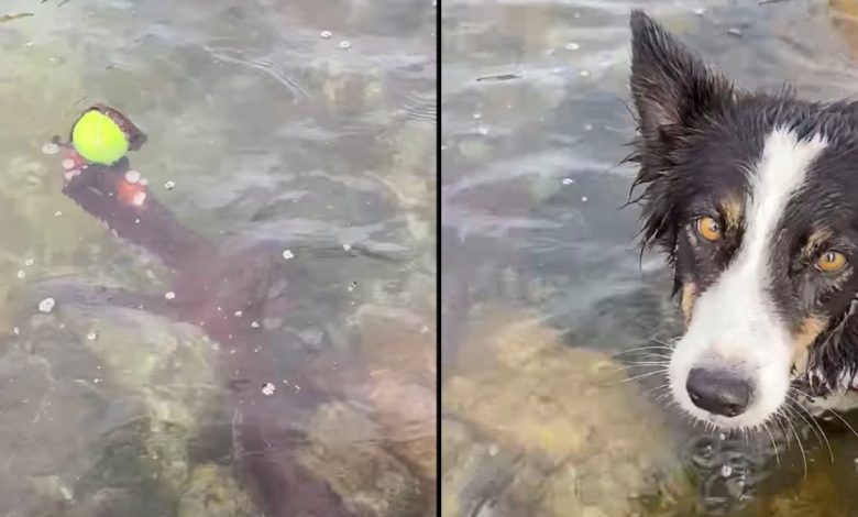 Helpless Dog Can Only Watch As An Arm From The Deep Grabs Ahold Of Her Ball