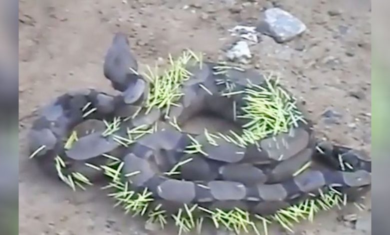 A Big Snake Found writhing In Pain After Regretting To Eat Porcupine