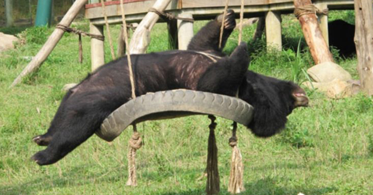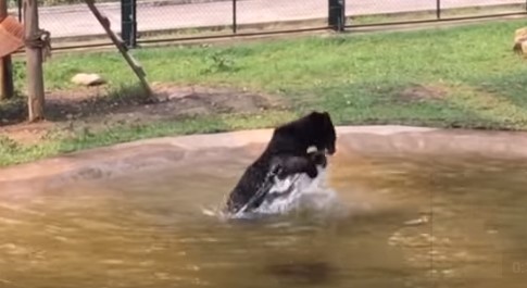 The bear in the video called Tuffy, who spent most of his life in a small crate at a bear bile farm. So, it is sure that he could just jump after being freed. The clip below shows Tuffy splashing and jumping around in a pool in his new place, writes thepetneeds