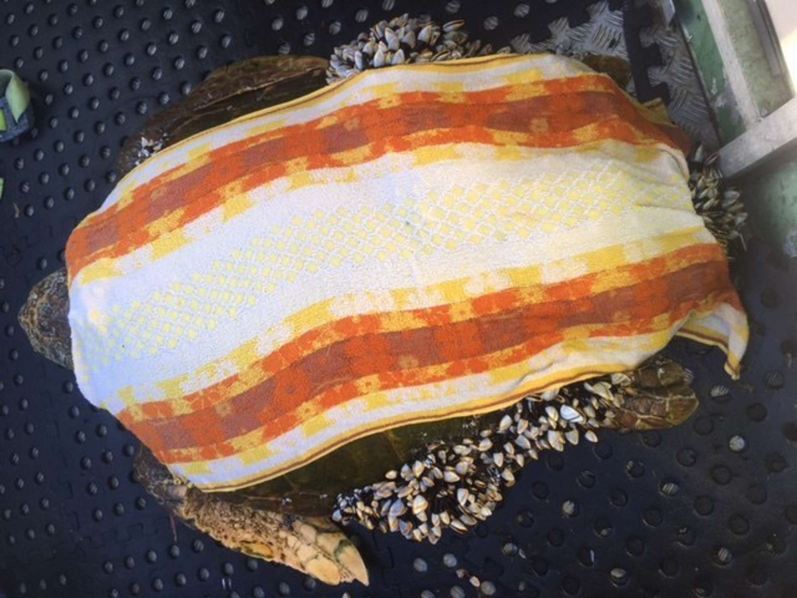 “Marine turtles are rarely spotted in Tasmanian waters, and this one was clearly in poor health,” wrote Marine Conservation Program (MCP), a government group who came to the rescue of the turtle, after the fishermen caught him and brought him to get help.