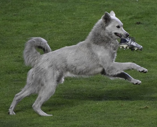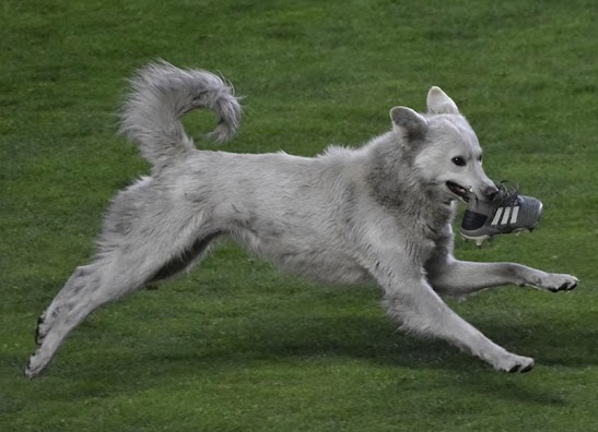 However, the dog was soon overlooked since his meander around the field, evading the referees and players, caused the game to be called off. The dog, thrilled with the attention he had gotten, chose to lie down on the pitch and began gnawing on the shoe excitedly.