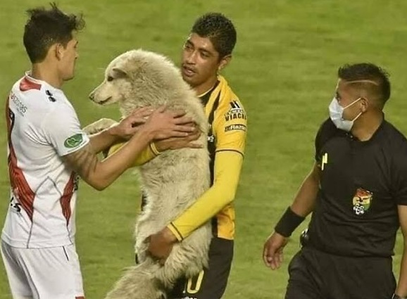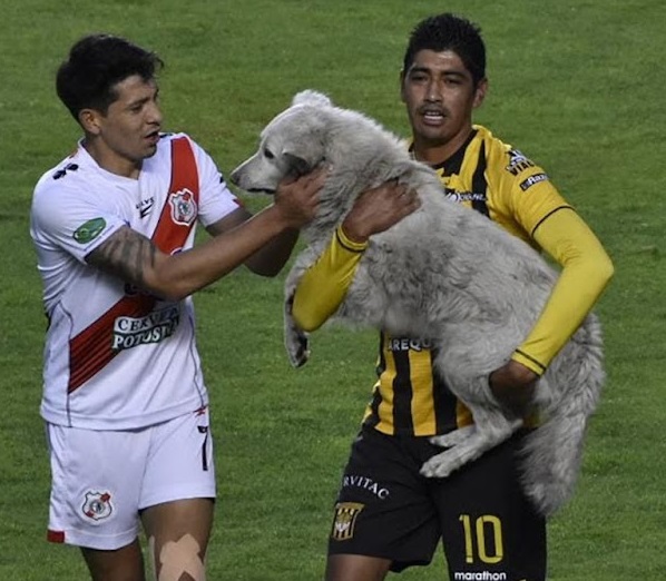 A stranger stole the show at the Hernando Siles stadium in La Paz, Bolivia, during a soccer game between The Strongest and Nacional de Potos. A homeless dog approached the field of play and caused quite a commotion since he had a sneaker in his jaws that he had stolen from a substitute.