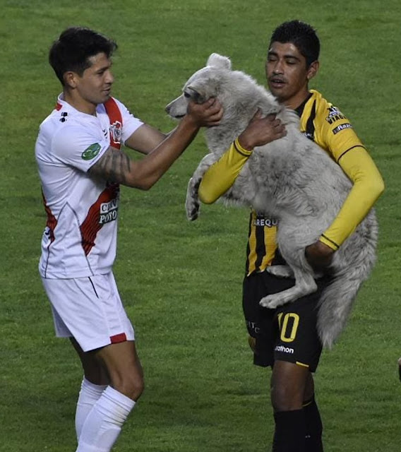 A loving dog that gained notoriety by disrupting a soccer game in Bolivia gets adopted by the player who assisted him, writes embounce