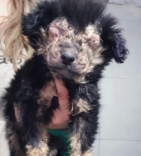 She took him to the vet because he was in horrible health; his skin was bald and terribly damaged,