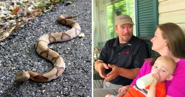 One day, the parents panicked when they saw Shiloh aggressively lunging at Bryson while playing in the yard. For a second, the Holloways doubted the dog’s intentions. But then they saw a huge Copperhead snake crawling by their son’s foot! Shiloh didn’t care about his own life and immediately attacked the snake!