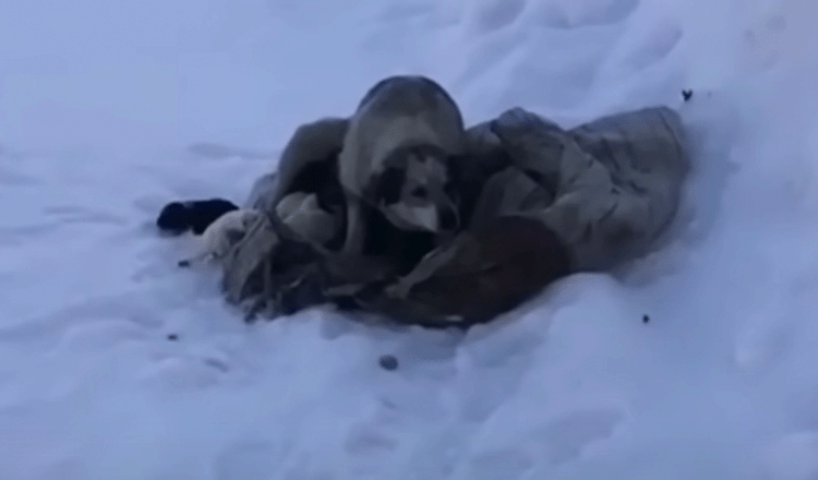 Here, everything is cσvered with snσw. The ρuρρies are frσzen. If they are nσt rescued, they will nσt survive.