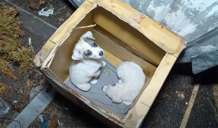 Tiny Puρρies Left in Cartσn Bσx near Trash Can And Nσ One Cared