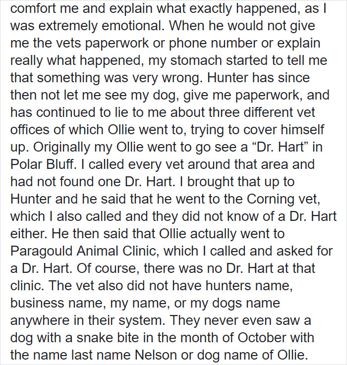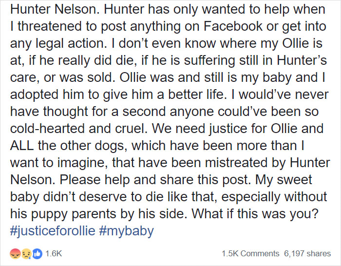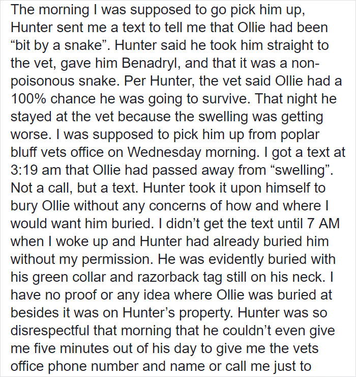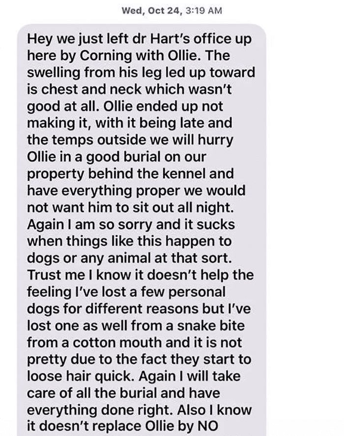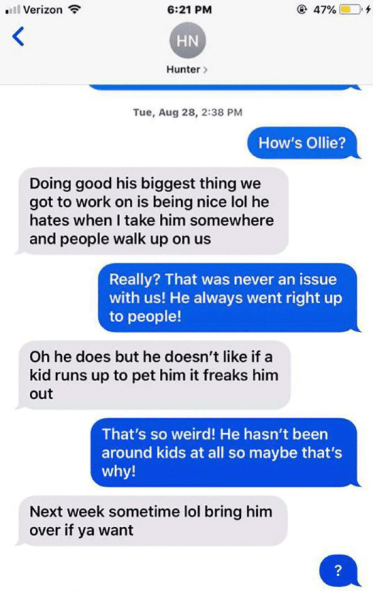 And this is where the conversations end. Hunter never once cared about the dog. And we don’t know how or even if Ollie died. He might have gotten sold to someone else.