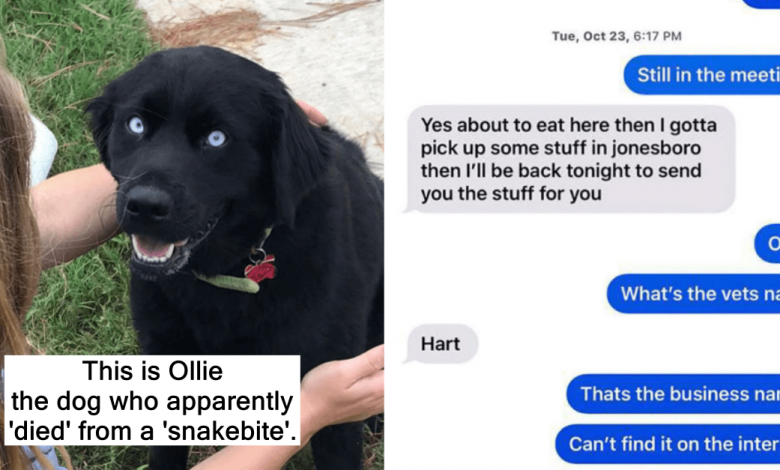 This is Ollie, the dog who apparently ‘died’ from a ‘snakebite’.