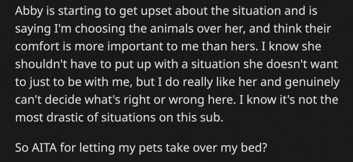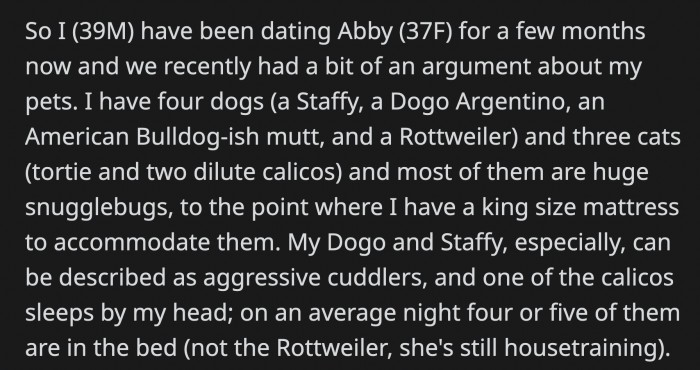 Guy Has To Choose Between His Girlfriend And Letting His Seven Pets Sleep On The Bed