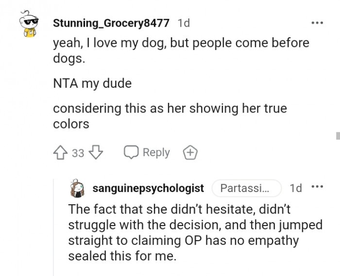 Some individuals prioritize their pets over humans, and that’s perfectly acceptable. However, it becomes a matter of decision-making for the other person involved. This lies at the heart of the problem in this particular story. I won’t pass judgment on whom people should choose because that is not my place. Generally, people would say that their partner is more important than anything else.