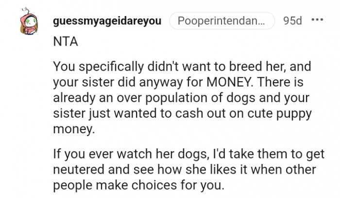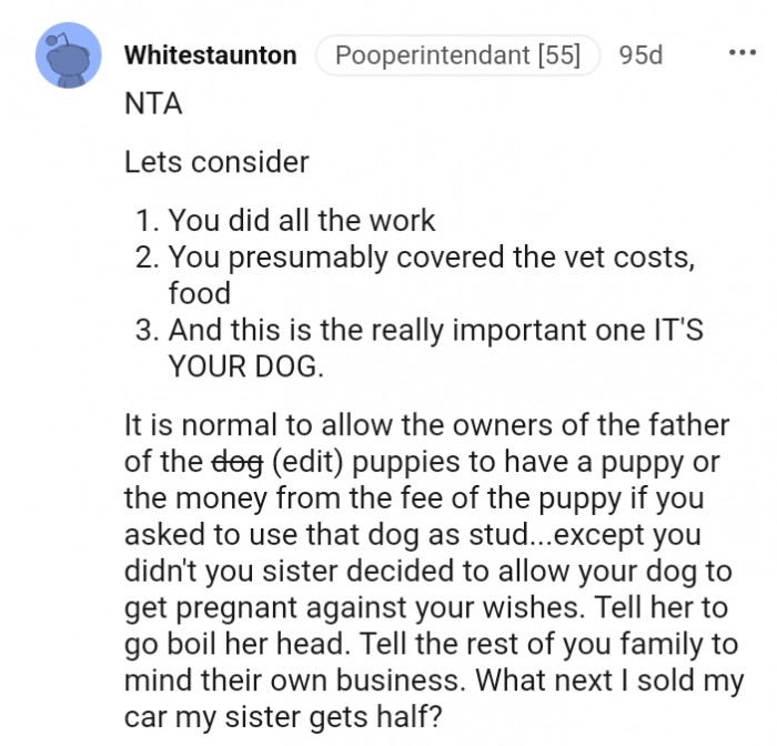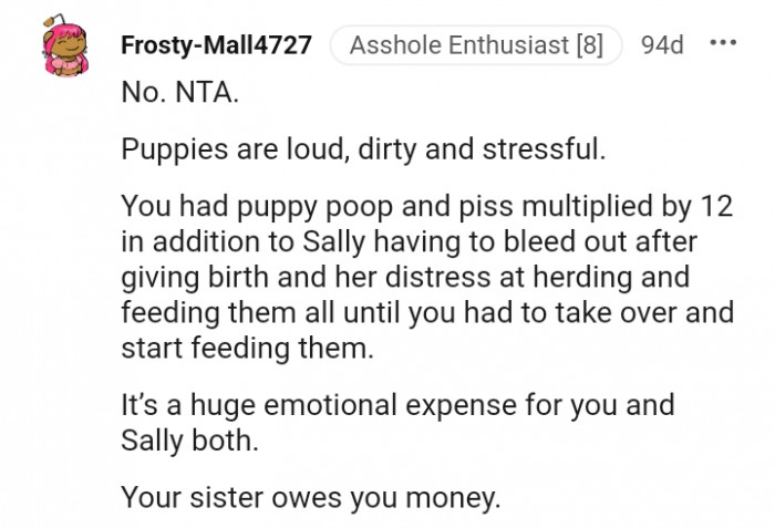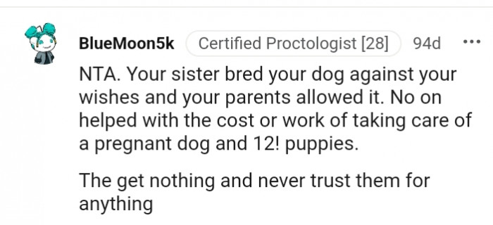 We hope that you picked something good from the story above. OP was not an A-hole here she was on her right raising puppies ain’t a piece of cake and for god sake, it was 12. Let us know what you think about this post in the comment section below and don’t forget to like and share it with your friends and family. Stay tuned with Defused for more fun content.