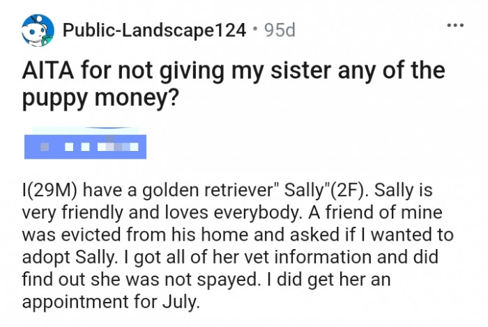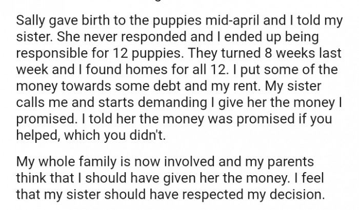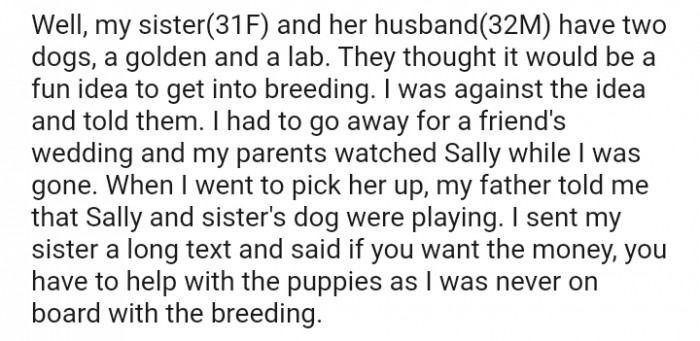 Man Asks If He’s Wrong For Not Giving His Sister Any Of The Puppy Money Because She Didn’t Help