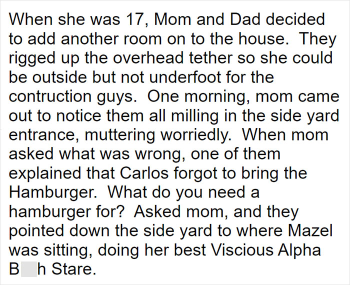 7. For a dog, Mazel’s behavior was certainly very unique.