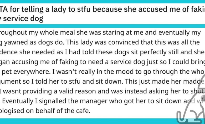 In this instance, the original poster has a service dog since she is prone to seizures. The OP went out for a meal with their service dog at a nearby cafe since they wanted to unwind. Sadly, a nosy and disrespectful Karen decided to check into the legitimacy of the service dog. She pestered the OP and their dog throughout their meal, until she was eventually instructed to “STFU and sit down.” And we might add, rather rightly. OP has a kind heart, though, and thinks they might have come off as a jerk in this circumstance. We assert that the OP has every right to an enjoyable meal free from intrusion by obnoxious and nosy people.